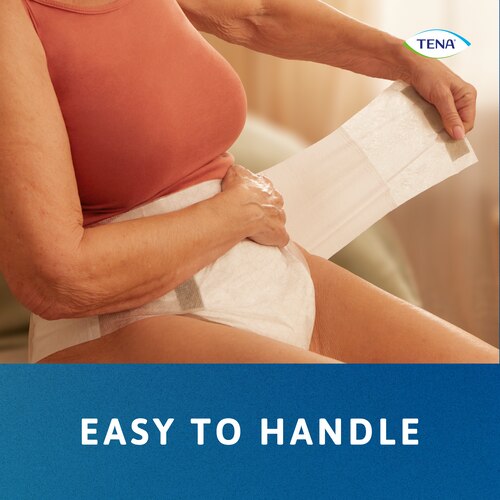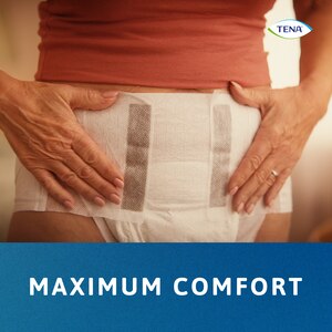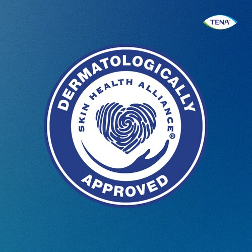 TENA ProSkin Stretch Day genlukkelig ble, der er lavet med bløde, åndbare materialer og godkendt af Skin Health Alliance, yder komfort og beskyttelse for skrøbelig hud.