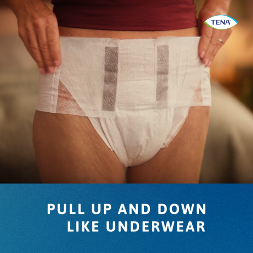TENA ProSkin Stretch Night unisex genlukkelig ble til inkontinens er en ny og mere moderne kategori af beskyttelse sammenlignet med andre klassiske design for voksenbleer. Den har store velcrolukninger og brede, meget strækbare sidepaneler designet med henblik på brugervenlighed, tilpasning og komfort. Den kan også trækkes op og ned som almindelige underbukser eller buksebleer, mens den forbliver sikkert på plads, hvilket tillader mere selvstændig brug og gør toiletbesøg lettere.