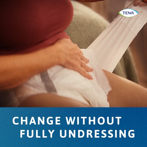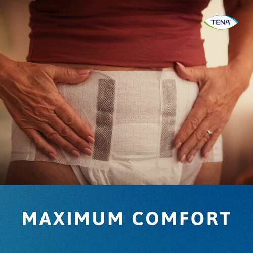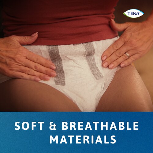 TENA ProSkin Stretch Night genlukkelig ble, der er lavet med bløde, åndbare materialer og godkendt af Skin Health Alliance, yder komfort og beskyttelse for skrøbelig hud.